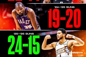 style='color:red;' href=/qiudui/lanqiu/11.html>太阳本赛季前39场,战绩24胜15负,暂时排名西部第6。上赛季同期,他们战绩是19胜20负。