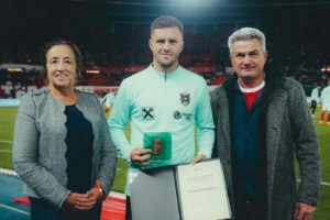 北京时间2025年10月16日讯 莱比锡官网消息,克里斯托夫-鲍姆加特纳在新赛季伊始表现出色,已经打入两球并有一次助攻。周三,这位奥地利国脚从国家队归来时,手中还拿着一个特别的奖杯。不过,这一次吸引人们注意的并不是他的足球成就。鲍姆加特纳因社会贡献而获公平竞赛奖。