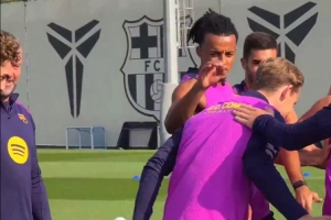 北京时间2025年10月16日讯 巴萨球员在训练时列队欢迎德容和费尔明,并对他们致以拍头礼进行祝贺。