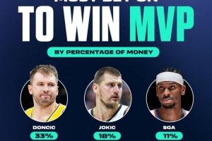 东契奇最被看好!新赛季MVP投注中 东契奇投注金额最高 占比33%
