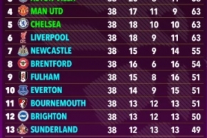 根据超级计算机的预测,维拉将排名第三, style='color:red;' href=/qiudui/zuqiu/45.html>曼联和 style='color:red;' href=/qiudui/zuqiu/39.html>切尔西则位居第四和第五位, style='color:red;' href=/qiudui/zuqiu/32.html>利物浦无缘前五位居第六。至于积分榜上半区其他位置,分别由纽卡、 style='color:red;' href=/qiudui/zuqiu/44.html>布伦特福德、 style='color:red;' href=/qiudui/zuqiu/42.html>富勒姆和 style='color:red;' href=/qiudui/zuqiu/40.html>埃弗顿占据。值得一提的是, style='color:red;' href=/qiudui/zuqiu/35.html>热刺最终只能位居第十四位。