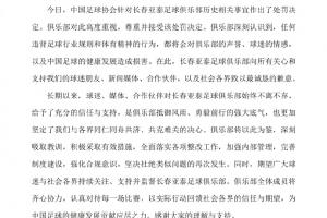 足协认定,2017年至2018年期间, style='color:red;' href=/qiudui/zuqiu/86.html>长春亚泰足球俱乐部违背体育道德、丧失体育精神、为谋取不正当利益进行不正当交易。