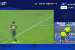 北京时间2025年10月18日讯 中超第27轮,浙江坐镇主场对阵山东泰山,主裁亲自回看VAR,没有判罚浙江球员禁区内手球犯规,目前比分仍为0-0