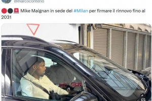 记者:迈尼昂已经前往米兰总部签署续约合同,新约至2031年
