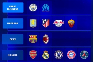 德转列冬窗转会评级:曼城和马赛最佳,军魔刺+国米多特令人失望