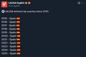 西甲官推整活调侃超级碗:西班牙包揽了2015年至今的所有西甲冠军