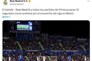 皇马官方:两队球员开赛时暂停15秒,以抗议西甲海外赛