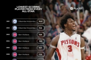 01年以来每届全明星场均得分最低的球员!大本03年场均6.9分最低