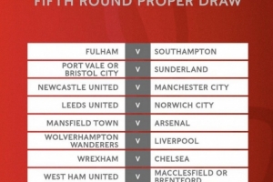 足总杯1/8决赛对阵:曼城vs纽卡 利物浦vs狼队 阿森纳vs英甲队