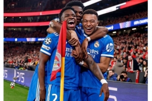 比赛第二天早上,皇马官方社媒发布第一条动态,晒出 style='color:red;' href=/qiuyuan/zuqiu/115.html >维尼修斯、 style='color:red;' href=/qiuyuan/zuqiu/104.html > style='color:red;' href=/qiuyuan/zuqiu/686.html > style='color:red;' href=/qiuyuan/zuqiu/933.html > style='color:red;' href=/qiudui/zuqiu/16559.html>姆巴佩、琼阿梅尼拥抱庆祝的照片,并配上了蓝色心形表情符号。