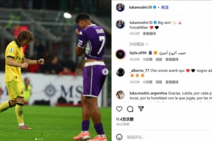 北京时间2025年10月21日讯 在米兰2-1击败佛罗伦萨后,莫德里奇更新社交媒体庆祝胜利。