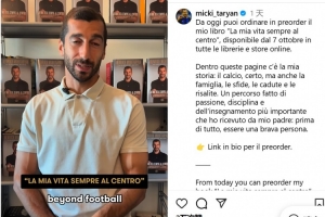 北京时间2025年10月4日讯 国米中场姆希塔良更新社交媒体,为自己的自传做宣传。