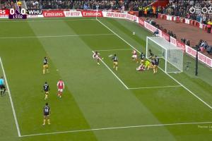 北京时间2025年10月04日讯 英超第7轮,阿森纳vs西汉姆联。比赛第13分钟,埃泽面对半空门凌空踢飞,枪手错失良机。