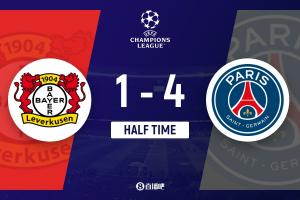 北京时间2025年10月22日讯 北京时间10月22日凌晨3时,欧冠联赛阶段第3轮,巴黎做客拜耳竞技场对阵勒沃库森。上半场,帕乔首开纪录,随后扎巴尔尼送点,格里马尔多罚丢点球,安德里希肘击犯规被红牌罚下,随后扎巴尔尼犯规领到红点套餐,阿莱克斯-加西亚点射扳平,杜埃双响、克瓦拉茨赫利亚传射。半场战罢,巴黎暂4-1领先勒沃库森。