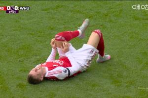 枪迷揪心!厄德高开场20分钟膝盖与对手碰撞,两度躺在场地内