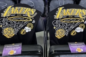 湖人在每个座位放置揭幕之夜定制T恤 背部印有新赛季所有赛程!