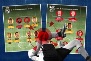 北京时间2025年10月25日讯 据《马卡报》统计,皇马和巴萨两队共计有多达16名球员受到不同程度的身体问题困扰。其中,皇马的吕迪格和阿拉巴,以及巴萨的特尔施特根、加维、莱万、奥尔莫、拉菲尼亚和霍安-加西亚共八人已确定缺席。