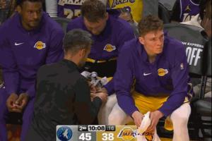 伤不起啊!队医在场边帮东契奇治疗首节因切球挫伤的手指