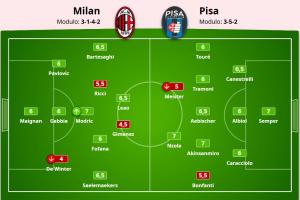 北京时间2025年10月25日讯 AC米兰2-2绝平比萨,赛后米体对米兰将帅的表现进行了打分。