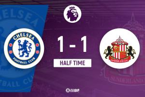 北京时间2025年10月25日讯 北京时间10月25日22:00,2025-26赛季英超联赛第9轮,切尔西坐镇斯坦福桥球场迎战桑德兰。上半场内托助攻加纳乔破门,伊西多扳平,切尔西暂1-1桑德兰。