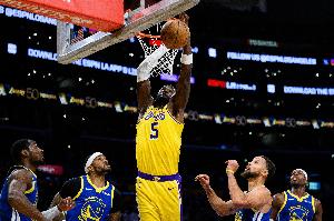 艾顿抢到前场篮板后双手扣篮,湖人队记Daniel Starkand评论道:“统治者艾顿。”