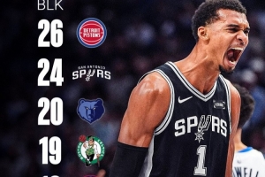 三场18次封盖只手遮天!赛季至今 只有4队盖帽总数比文班多