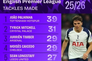 北京时间2025年10月28日讯 英超第9轮已经完赛,squakwa也统计了本赛季英超抢断情况,拜仁租将帕利尼亚居首。