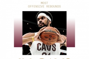 贾勒特-阿伦骑士生涯前场篮板数超越詹姆斯 独居队史第十位