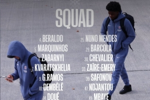 巴黎本场比赛大名单如下: