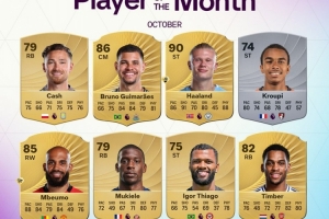 北京时间2025年10月30日讯 英超官方公布了10月最佳球员候选8人名单,哈兰德领衔: