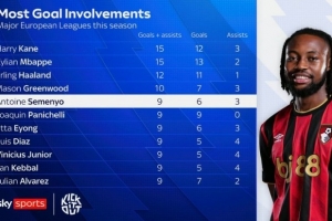 北京时间2025年11月2日讯 天空体育盘点了本赛季欧洲主流联赛球员参与进球榜(进球+助攻),以下为具体榜单(只统计联赛):