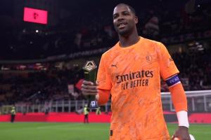 7次扑救+扑点完成零封,官方:迈尼昂当选米兰1-0罗马全场最佳
