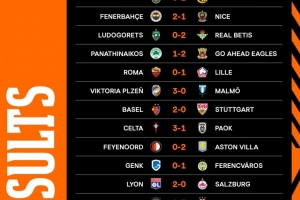 北京时间2025年10月3日讯 欧联杯联赛阶段第二轮比赛战罢,罗马0-1不敌里尔,费内巴切2-1战胜尼斯,巴塞尔2-0击败斯图加特,费耶诺德0-2落败于维拉。