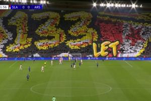 北京时间2025年11月05日讯 欧冠阿森纳vs布拉格斯拉维亚,斯拉维亚本周庆祝建队133周年,球迷展示巨型tifo。