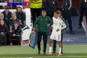 北京时间2025年11月05日讯 利物浦vs皇马第81分钟,阿诺德登场换下居莱尔,安菲尔德嘘声震天!