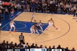 张飞绣花!兰德尔穿越包夹滞空拉杆上篮 华丽打成2+1