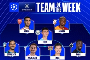 北京时间2025年11月7日讯 欧冠联赛阶段第4轮的比赛已全部结束,欧足联官方评选出了本轮欧冠的最佳阵容。