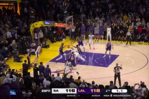 北京时间2025年11月7日讯 昨天一场NBA常规赛,湖人在主场以118-116击败马刺。今天,NBA官方公布了最后两分钟裁判报告。有一次误判。