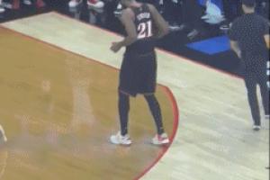 先别高兴 还没赢呢!恩比德得知巴恩斯6犯离场后摇头晃脑跳起恰恰