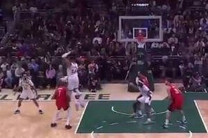比赛当中,杜兰特吊球给申京,申京单打试探后回传,杜兰特持球突进急停假动作晃飞字母哥后跳投打进。
