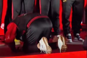 北京时间2025年11月10日讯 今日重庆铜梁龙进行了冲超庆典,在晚会上,赛季中途接手球队的主帅张外龙感谢了球员们的努力,并向队员们行大礼致谢。