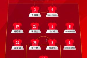 U22国足首发:12-霍深坪、19-胡荷韬、4-吾米提江、5-刘浩帆、24-汪士钦、28-贺一然、3-王博豪、6-徐彬、20-李镇全、8-木力甫、9-拜合拉木