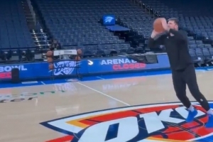 这不是P的!东契奇踩着中场Logo 三分三连中还都是空心😲
