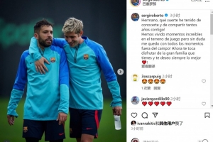 北京时间2025年10月8日讯 西班牙边卫阿尔巴将在本赛季结束后退役,前巴萨队友罗贝托社媒发文祝福。
