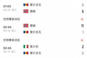 就输在虐菜?挪威2战垫底摩尔多瓦收获15净胜球,而意大利仅取4球