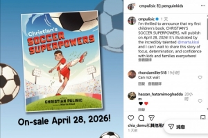 北京时间2025年11月15日讯 普利西奇通过社交媒体宣布,将出版儿童读物在美国的孩童群体中宣传足球。