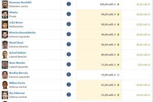 仅登贝莱1人上亿!法甲身价前十:登贝莱1亿欧居首,巴黎10人霸榜
