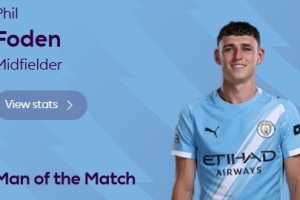 赛后,英超官方确认 style='color:red;' href=/qiuyuan/zuqiu/40.html >福登当选本场比赛的MVP。