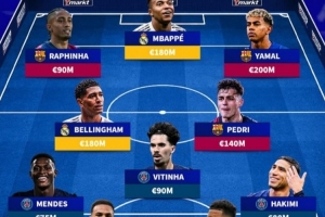 前锋: style='color:red;' href=/qiuyuan/zuqiu/113.html >拉菲尼亚(巴萨,9000万)、 style='color:red;' href=/qiuyuan/zuqiu/104.html > style='color:red;' href=/qiuyuan/zuqiu/686.html > style='color:red;' href=/qiuyuan/zuqiu/933.html > style='color:red;' href=/qiudui/zuqiu/16559.html>姆巴佩(皇马,1.8亿)、 style='color:red;' href=/qiuyuan/zuqiu/134.html > style='color:red;' href=/qiuyuan/zuqiu/874.html >亚马尔(巴萨,2亿)