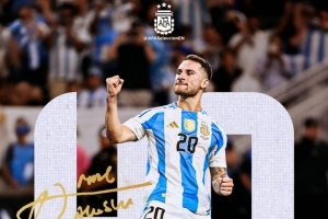 斩获三冠!麦卡利斯特国家队出战40场,阿根廷队晒海报祝贺